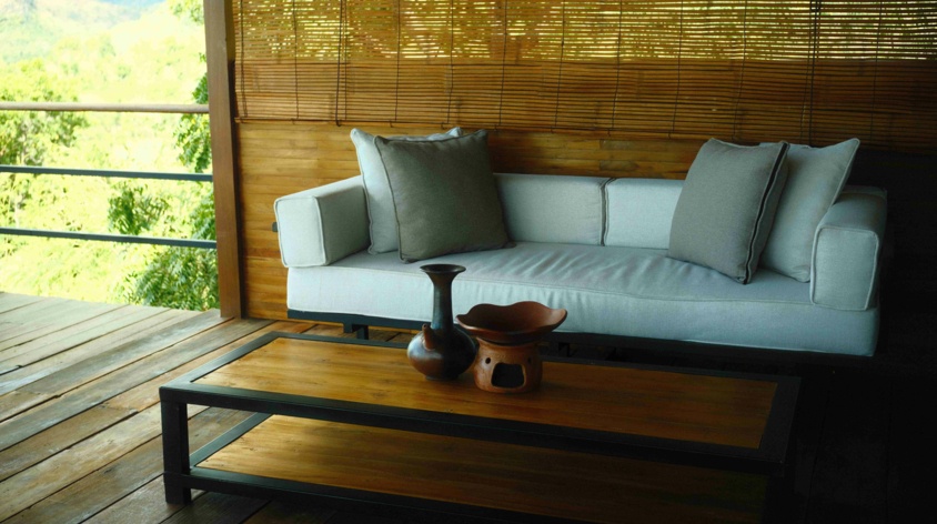 Czy żaluzje drewniane na tarasie mocno ograniczają światło w salonie?