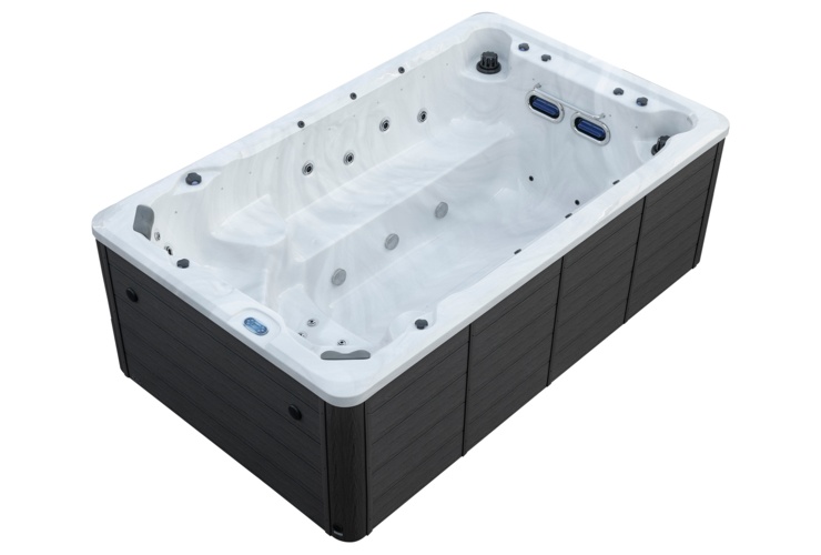 Basen wyposażono w 2 mocne strumienie do pływania, które generują stabilny, równomierny nurt wody, umożliwiający intensywny trening bez konieczności pokonywania dystansu.