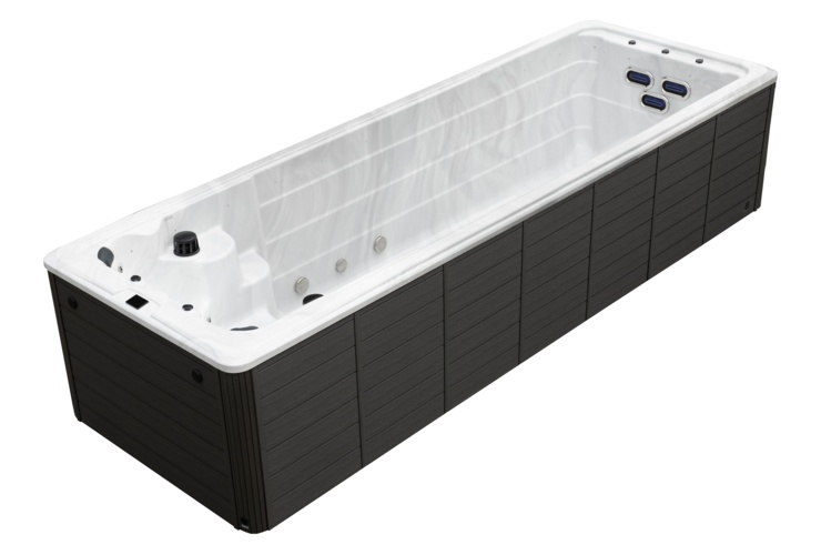 Basen wyposażono w 3 mocne strumienie do pływania, które generują stabilny, równomierny nurt wody, umożliwiający intensywny trening bez konieczności pokonywania dystansu.