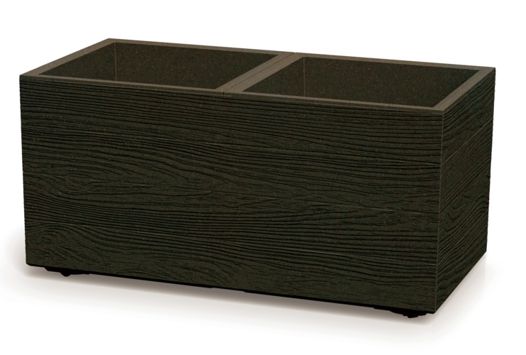 Ta duża, prostokątna donica o pojemności aż 63 l to prawdziwy gigant, który pomieści nawet większe rośliny. Jej wyjątkowy wygląd zawdzięcza innowacyjnemu materiałowi – wysokiej jakości tworzywu sztucznemu z dodatkiem 33% naturalnych wiórów drzewnych. Dzięki temu donica ma unikalną, naturalną fakturę i jest bardziej przyjazna dla środowiska.
