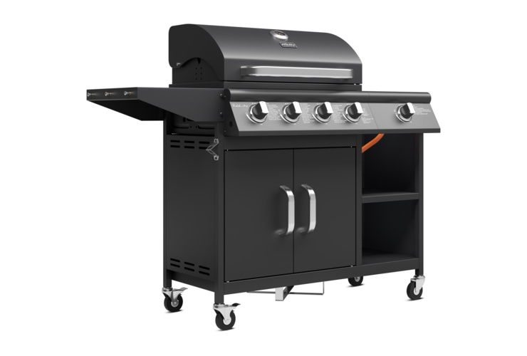 - Dwa wygodne blaty robocze z trzema dodatkowymi uchwytami na akcesoria. Prawy blat roboczy wyposażony w nierdzewny palnik boczny, idealny do przygotowywania potraw w garnkach.