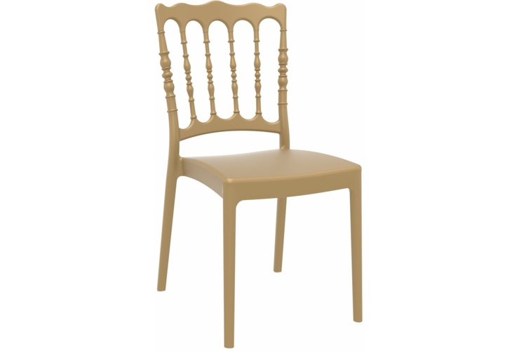 Krzesło Siesta Napoleon to połączenie eleganckiej formy z najnowocześniejszą techniką produkcji. Wykonane zostało z mieszanki polipropylenu i włókna szklanego, co czyni je niezwykle odpornym na warunki atmosferyczne i uszkodzenia. Dostępne w czterech klasycznych kolorach. Gustowne zdobienie na oparciu współgra z prostym kształtem i czyni krzesła idealnym dopełnieniem wystroju restauracji, czy sali weselnej, ale sprawdzą się one także w kuchni, salonie, lub ogrodzie. Krzesła zaprojektowane zostały w taki sposób, aby umożliwić ich sztaplowanie.