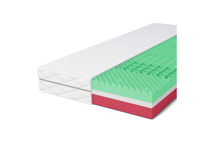 Górna warstwa materaca to innowacyjna pianka typu T, która została zaprojektowana z myślą o Twoim komforcie. Ta profilowana, zielona warstwa ma zmniejszoną gęstość, co sprawia, że materac staje się jeszcze bardziej miękki i przyjemny w dotyku. Dodatkowo, specjalne wyprofilowanie pianki nadaje materacowi 7 stref komfortu. Dzięki temu różne części Twojego ciała są odpowiednio podtrzymywane i odciążone, co pozwala na bardziej relaksujący sen.