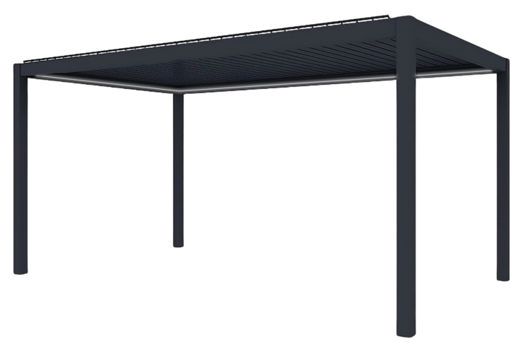 Zadaszenie składa się z ruchomych żaluzji, które można wygodnie zamykać i otwierać za pomocą sterowania elektrycznego - pilota. Żaluzje przymocowane są do ukrytych prowadnic zapobiegając występowaniu drgań i zapewniając cichą pracę. Po całkowitym zamknięciu zadaszenia, żaluzje idealnie nachodzą na siebie tworząc skuteczną ochronę przestrzeni pod pergolą i komfortowe miejsce wypoczynku. Żaluzje zostały zaprojektowane tak, aby wytrzymały trudne warunki atmosferyczne jak intensywny deszcz czy grad.