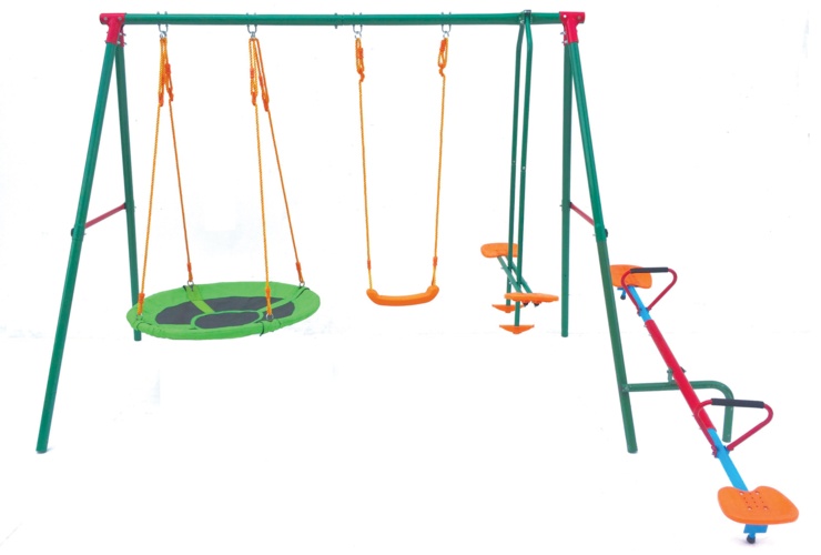 | W komplecie | konstrukcja z rur stalowych, siedzisko x 1, bocianie gniazdo x 1, ławeczka podwójna x 1, huśtawka równoważna x 1, komplet śrub montażowych, kotwy mocujące do podłoża |