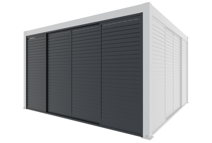 Przesuwna ścianka żaluzjowa 4 m do pergoli Schatler Nova Lux Alu to funkcjonalne i eleganckie rozwiązanie, które skutecznie chroni przed słońcem i wiatrem, zwiększa prywatność oraz podkreśla nowoczesny charakter strefy wypoczynkowej. Doskonale sprawdzi się jako boczna zabudowa pergoli, pozwalając korzystać z ogrodu w komfortowych warunkach.