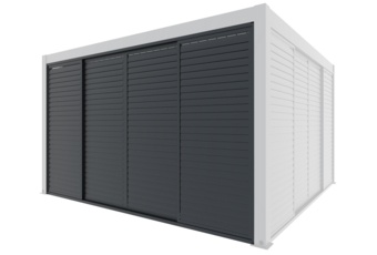Żaluzjowe wypełnienie pozwala na regulację ilości światła oraz cyrkulacji powietrza, zapewniając przyjemny mikroklimat pod pergolą. Szerokość i ilość paneli zostały zaprojektowane specjalnie z myślą o pergoli Schatler Nova Lux Alu.