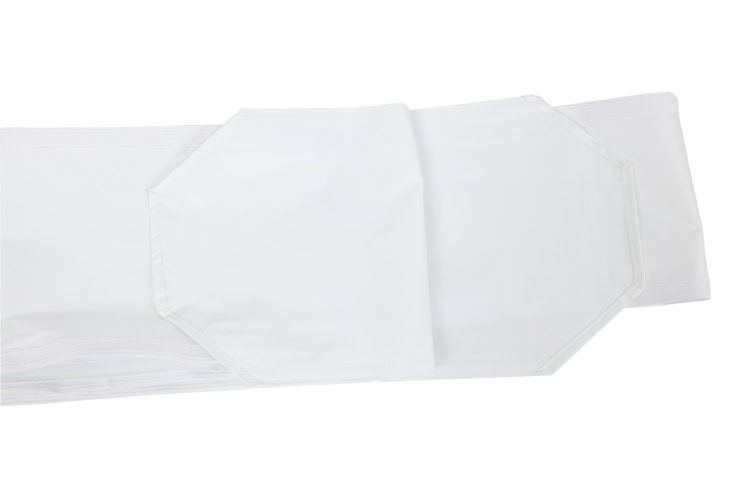 Rynna do namiotu handlowego wykonana z poliestru o gramaturze 300 g, podgumowana. Na brzegach posiada rzepy służące do przypięcia jej do dachów namiotów (w miejscu ścian).