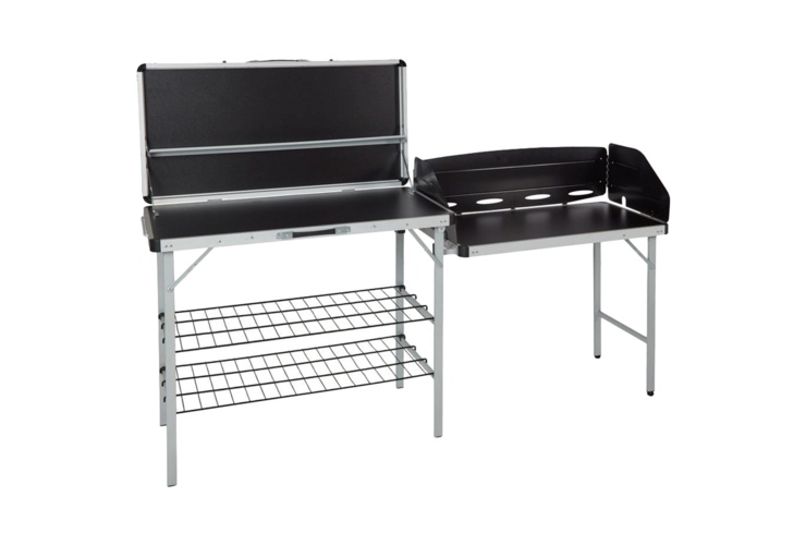 Szafka turystyczna kuchenna Isabella to idealne rozwiązanie dla osób, które lubią mieć zorganizowaną przestrzeń również na campingu. Jest lekka, składana i łatwa w transporcie, a przy tym stabilna i bardzo funkcjonalna. Wyższy blat idealnie nada się do przygotowania składników, a mniejszy stolik to świetne miejsce na kuchenkę gazową, która dzięki wbudowanym ścianką, będzie osłonięta od wiatru. Dzięki dołączonym półką wygodnie przechowasz najpotrzebniejsze naczynia czy garnki. Dodatkowo kuchenka wyposażona jest w haczyki na testylia oraz torbę, ułatwiającą transport i przechowywanie.