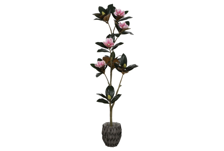 Nasza magnolia została stworzona z dbałością o każdy detal. Realistyczne pędy i liście tworzą solidną podstawę, na której dumnie rozkwitają duże kwiaty w odcieniach różu, o delikatnej, jedwabistej strukturze. Pąki i rozchylające się kwiaty dodają jej dynamiki i naturalności, sprawiając, że na pierwszy rzut oka trudno ją odróżnić od żywej rośliny.