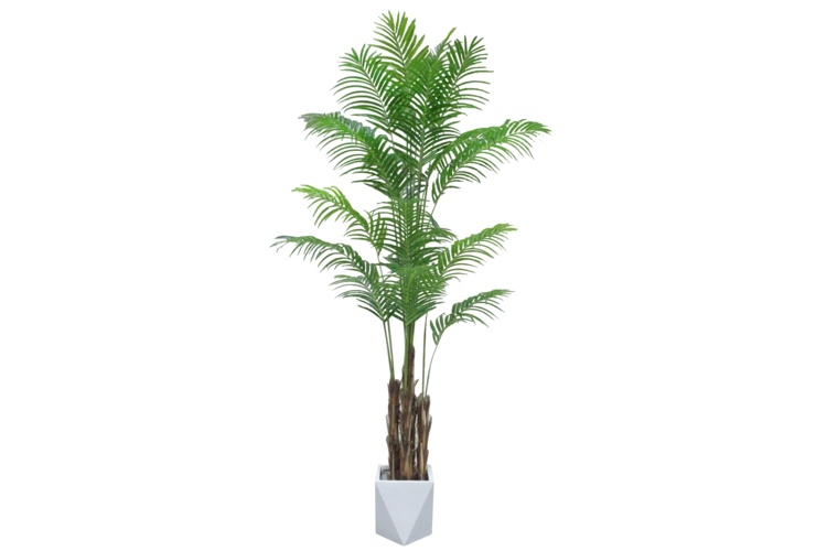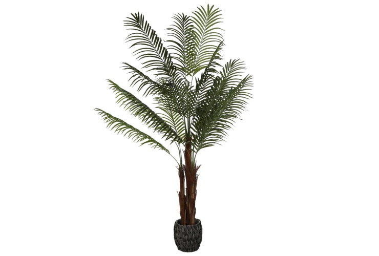 Nasza palma została zaprojektowana z dbałością o każdy, nawet najmniejszy szczegół, by idealnie naśladować żywą roślinę. Rozłożyste, pierzaste liście o żywym, zielonym kolorze, wykonano z wysokiej jakości materiałów, które wiernie oddają naturalną fakturę i połysk. Solidny, naturalnie wyglądający pień i ciężka donica gwarantują stabilność, dzięki czemu palma prezentuje się okazale i jest bezpieczna w każdym miejscu.