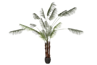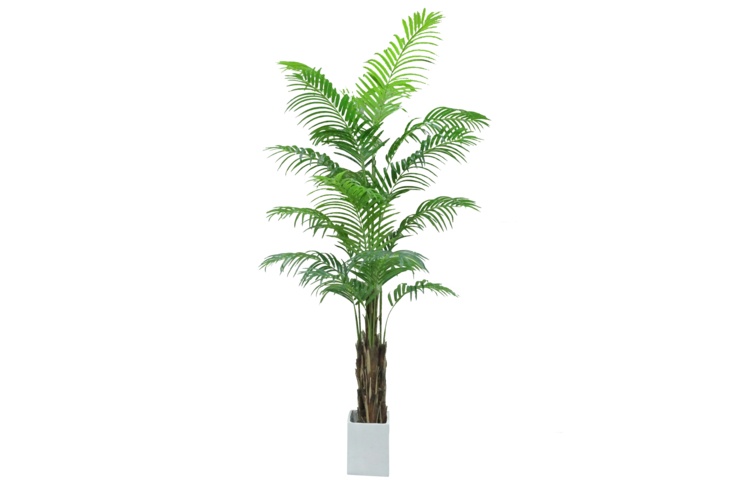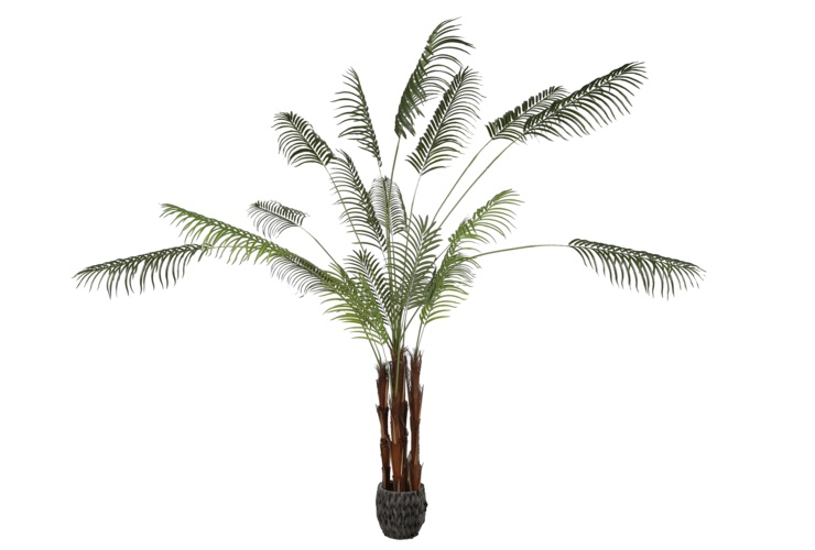 Nasza palma została zaprojektowana z dbałością o każdy, nawet najmniejszy szczegół, by idealnie naśladować żywą roślinę. Rozłożyste, pierzaste liście o żywym, zielonym kolorze, wykonano z wysokiej jakości materiałów, które wiernie oddają naturalną fakturę i połysk. Solidny, naturalnie wyglądający pień i ciężka donica gwarantują stabilność, dzięki czemu palma prezentuje się okazale i jest bezpieczna w każdym miejscu.