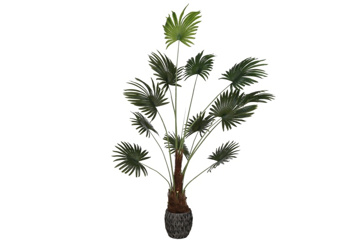 Ta imponująca palma wachlarzowa na pniu została stworzona z myślą o najwyższej jakości i realizmie. Jej bujne, rozłożyste liście doskonale imitują naturalny wygląd prawdziwej palmy, zachwycając precyzyjnym wykonaniem i dbałością o detale. Dzięki solidnej konstrukcji i wykorzystaniu trwałych materiałów, palma jest stabilna i odporna na uszkodzenia, co gwarantuje jej piękny wygląd przez długie lata.