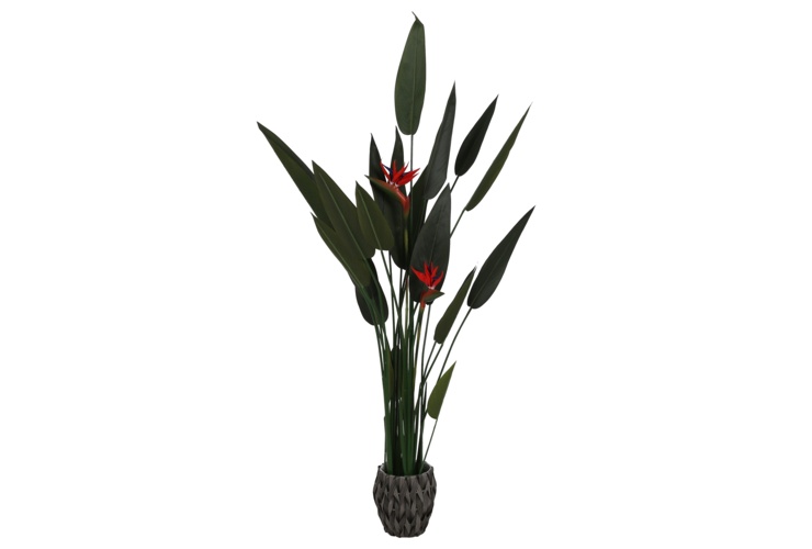 Ta wyjątkowa roślina została zaprojektowana z dbałością o każdy detal, by jak najwierniej odwzorować naturalny wygląd sterlicji. Jej duże, soczyście zielone liście o charakterystycznym kształcie oraz realistycznie oddane, czerwone kwiaty o strukturze przypominającej ptasi dziób sprawiają, że na pierwszy rzut oka trudno ją odróżnić od żywej rośliny.