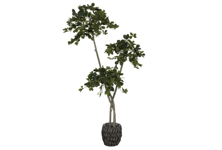 Drzewo dostarczane jest w prostej doniczce, co ułatwia jego ustawienie i stabilizację. Możesz je później umieścić w ozdobnej osłonce, która jeszcze lepiej dopasuje się do Twojej aranżacji.