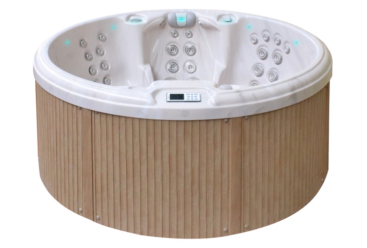 Wanna ogrodowa z hydromasażem Aquess Recharge 3101 to synonim luksusu i wspólnego relaksu, zaprojektowany z myślą o dużym gronie przyjaciół lub rodziny. Mimo imponującej pojemności 1340 litrów, jej okrągły kształt o średnicy 200 cm i wysokości 85 cm jest niezwykle kompaktowy, idealnie wpasowując się nawet w mniejsze przestrzenie tarasu czy ogrodu. Niska waga własna wynosząca 220 kg ułatwia transport i instalację.