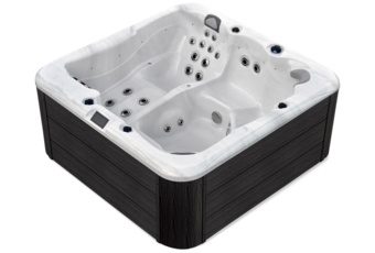 | Wyposażenie | dwie pompy dwubiegowe o mocy 3 HP, panel sterowania Balboa, podgrzewacz wody o mocy 3000 W, podwodne oświetlenie LED ze zmianą kolorów, system filtracji, pompa cyrkulacyjna, ozonator, głośniki z systemem BT, filtr UV, system aromaterapii, regulator powietrza, zawór do wody, odpływ 3/4 cala, dysze fontannowe, pokrywa termiczna |